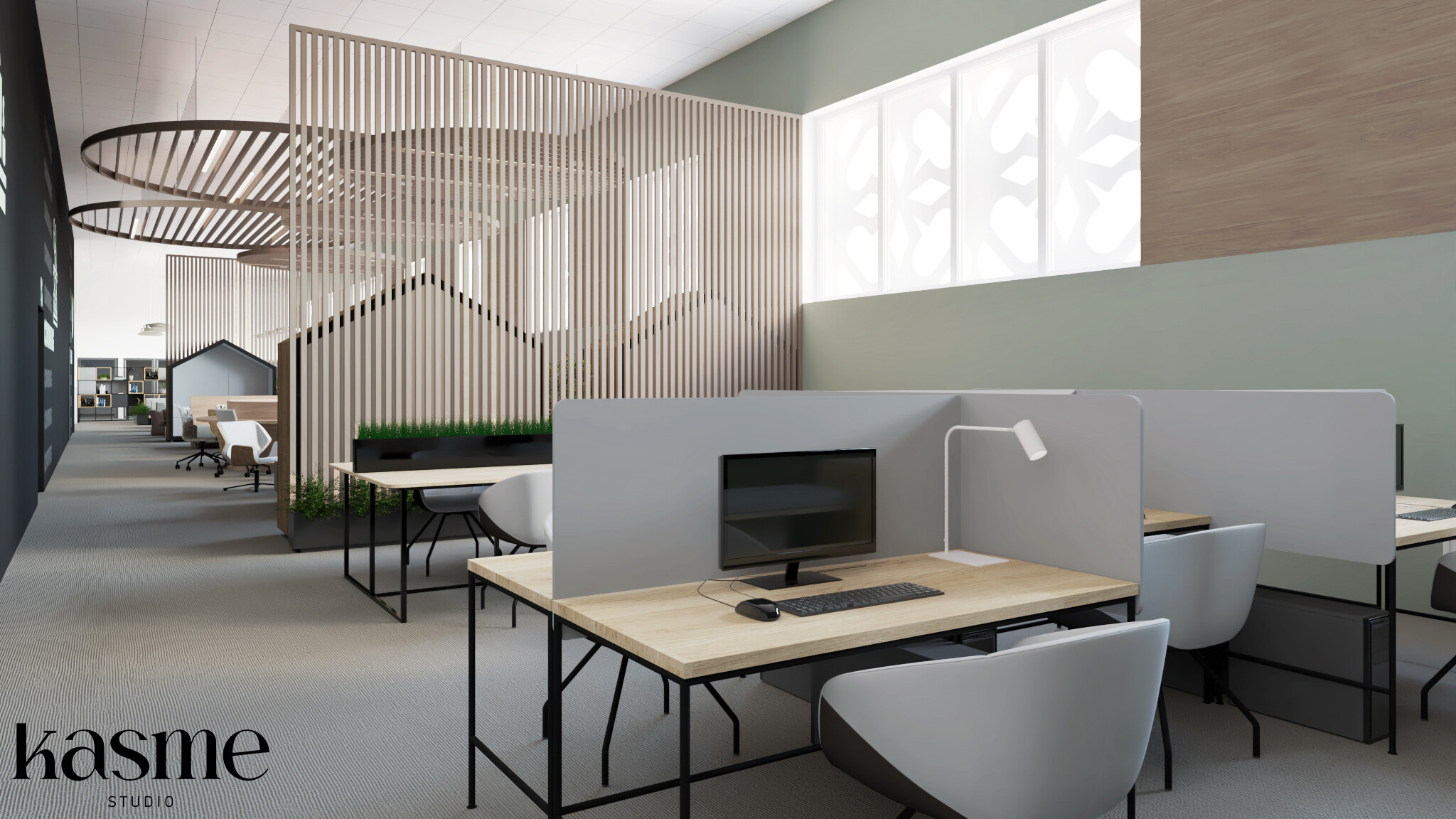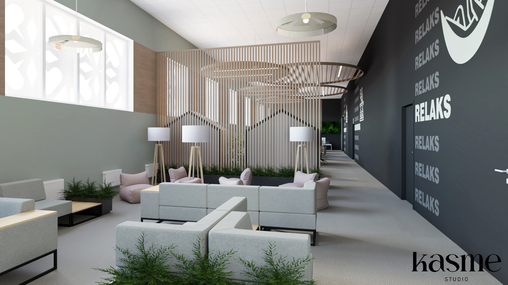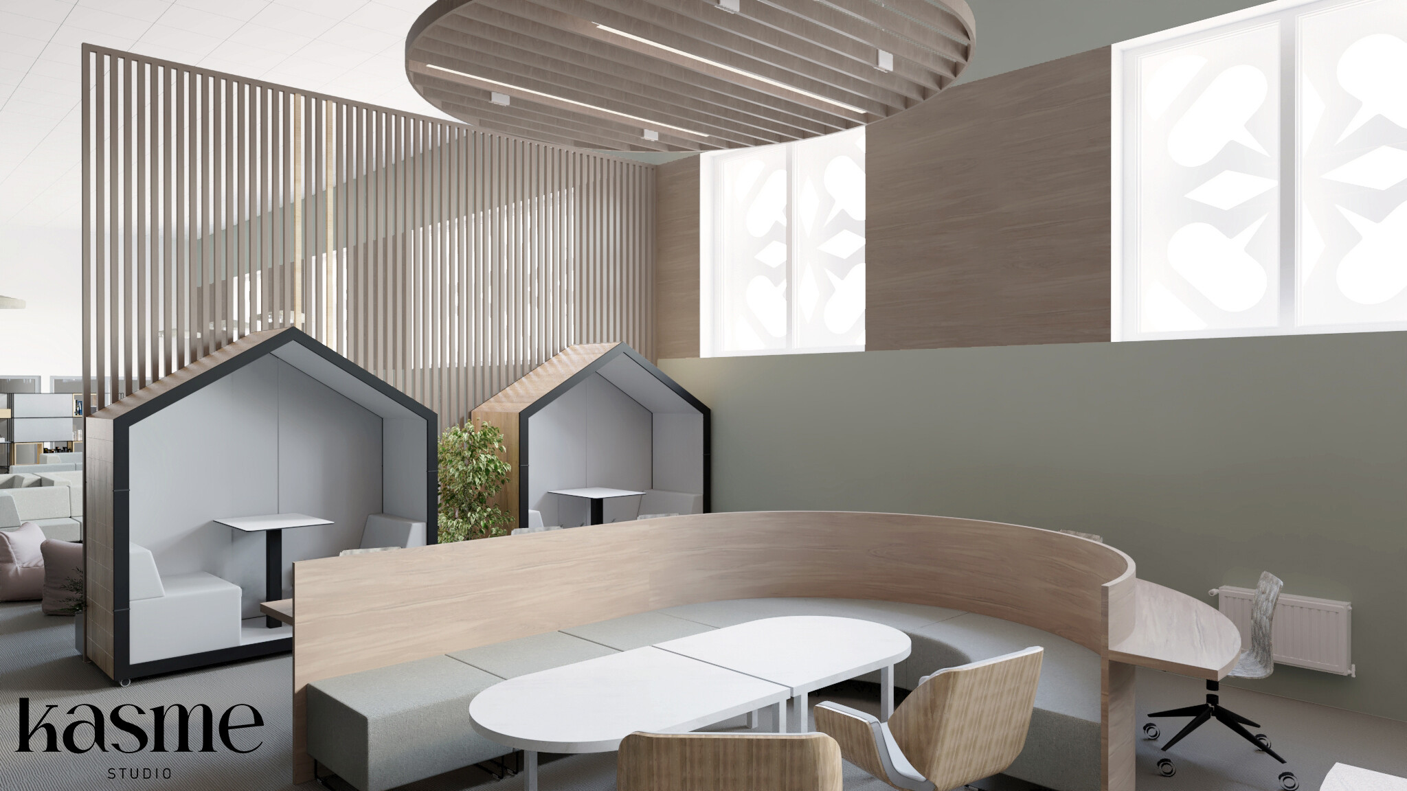 Celem było koncepcyjne zaprojektowanie strefy coworkingowej w Bibliotece Politechniki Białostockiej. Projekt zakładał podział danej przestrzeni na strefę do odpoczynku, strefę do pracy indywidualnej oraz w grupach, a także część przeznaczoną na stanowiska komputerowe. Poszczególne części oddzielone są od siebie dzięki zastosowaniu ażurowych ścianek, strefy te odznaczają się również różnym oświetleniem.