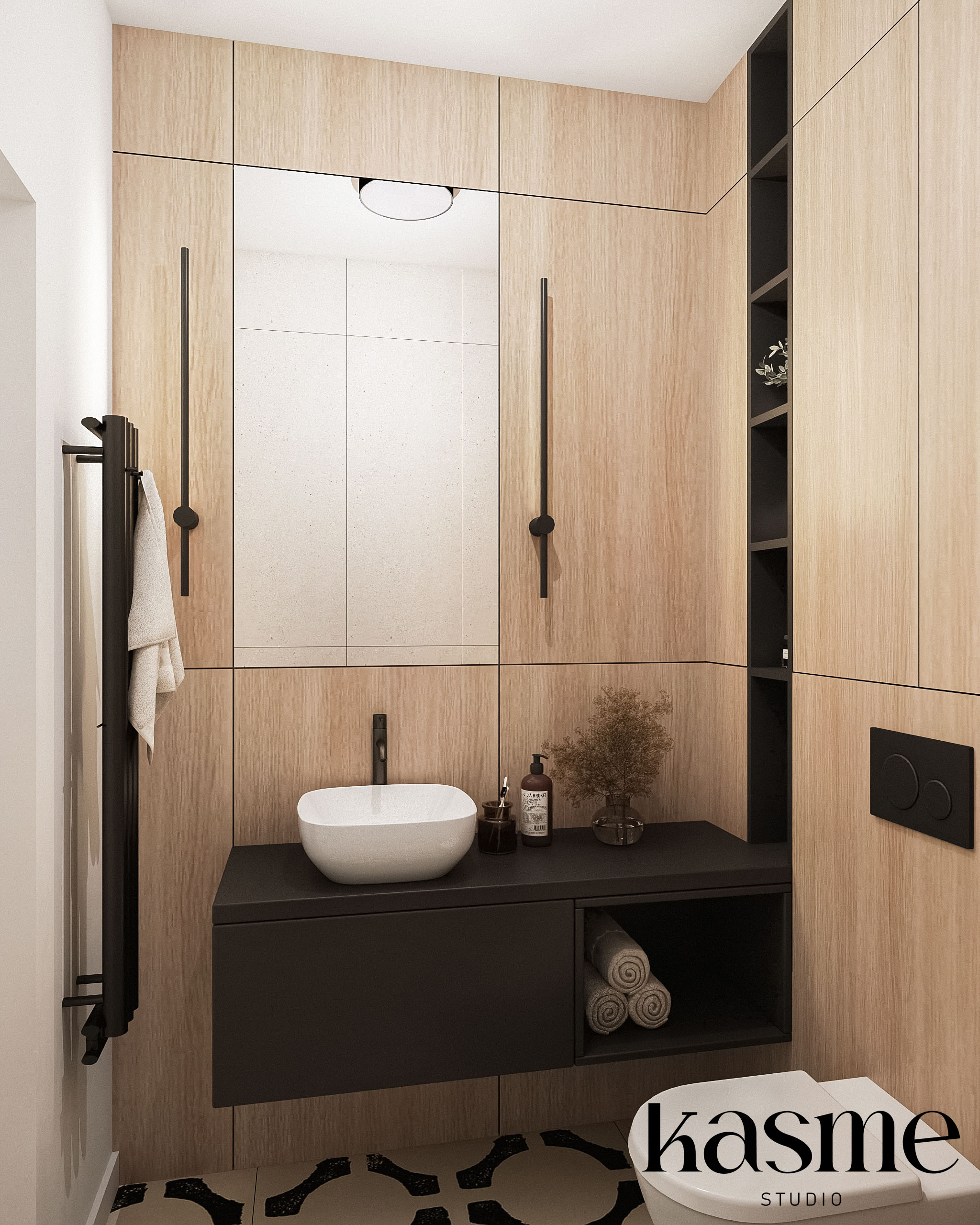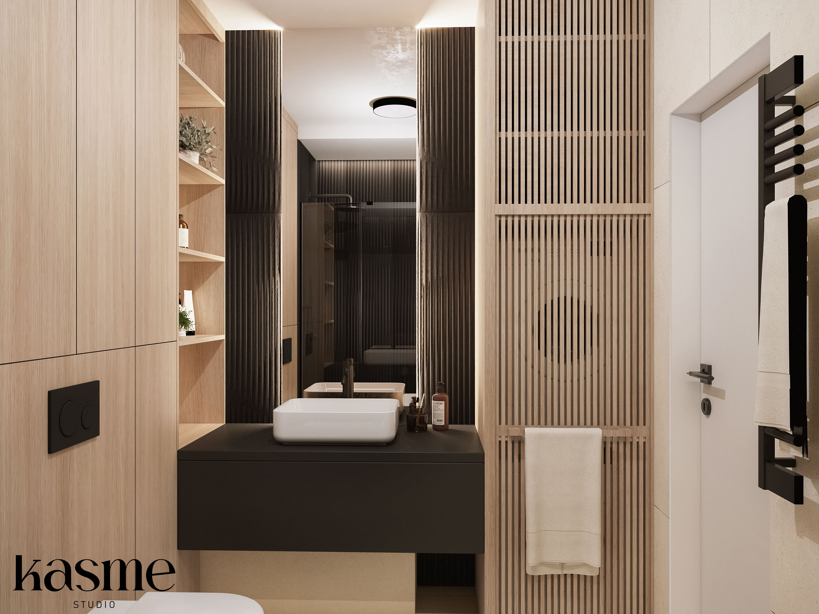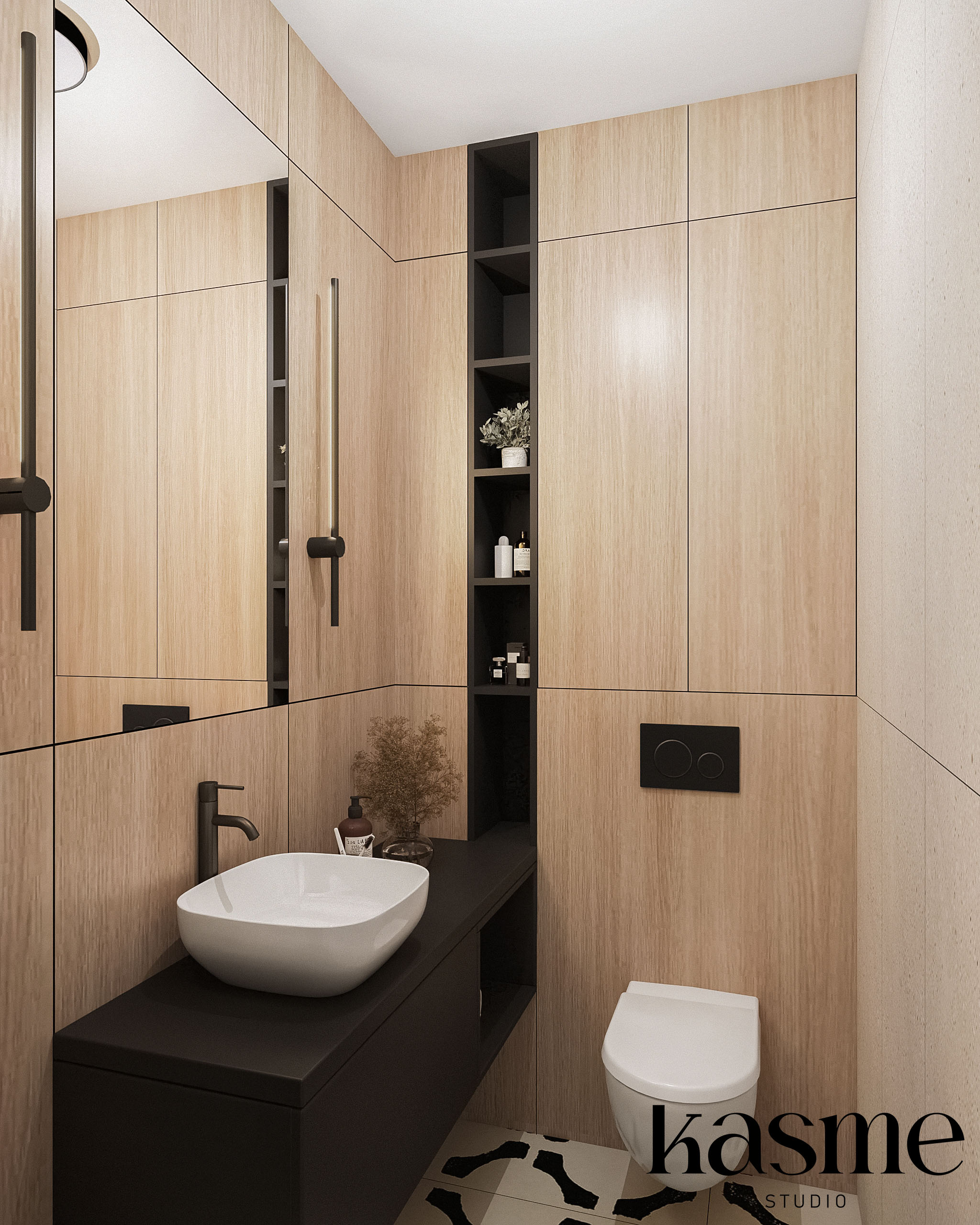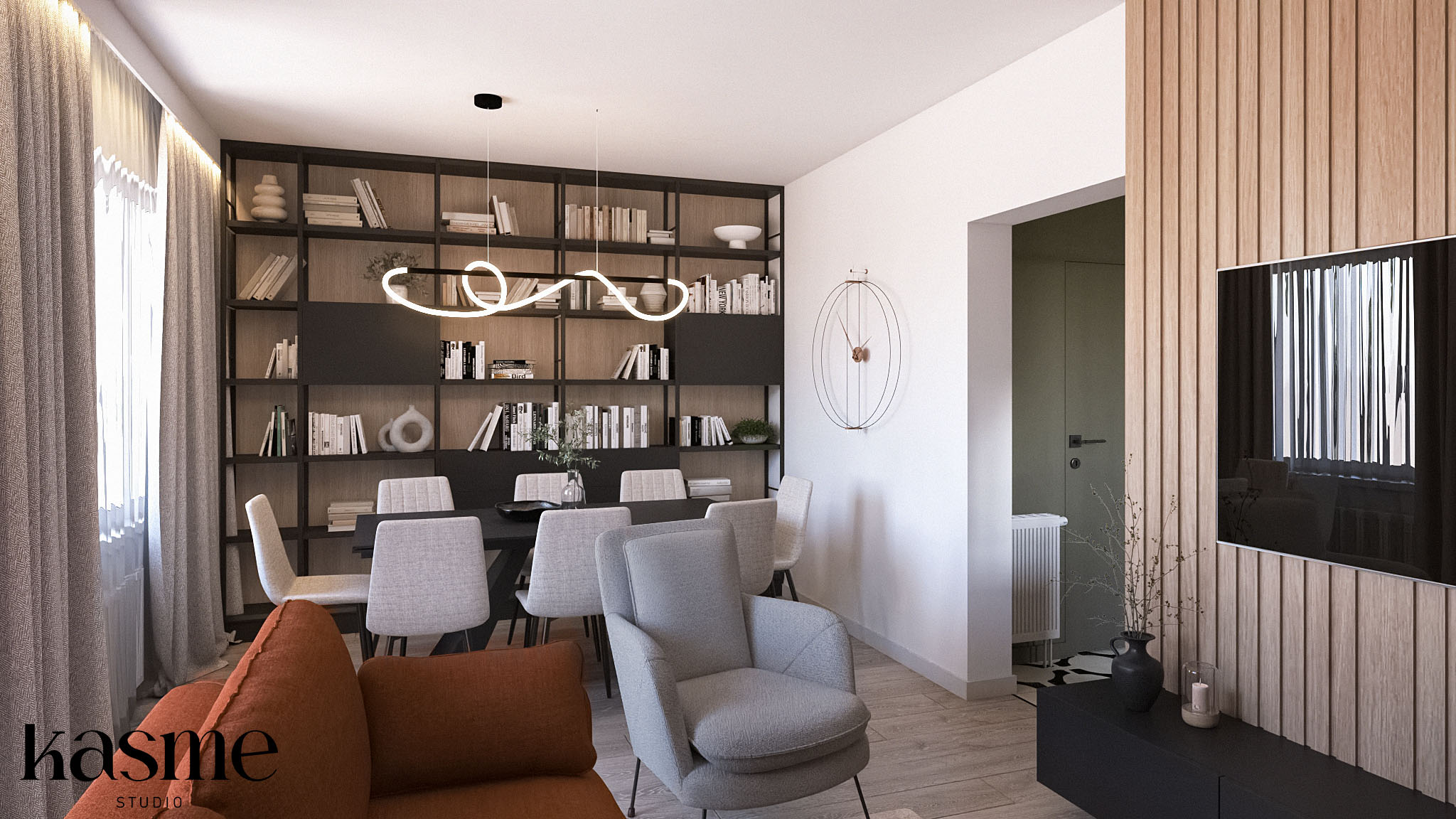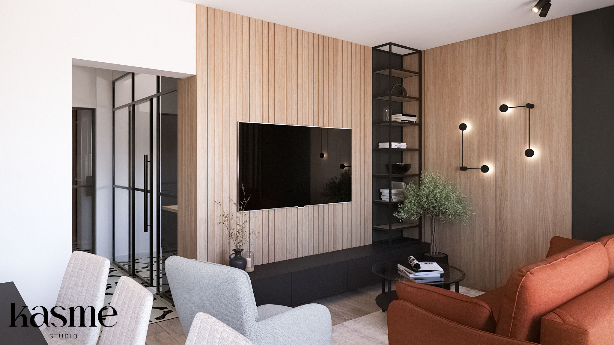 Projekt domu z lat 60 w Białymstoku. Dom został przeprojektowany pod nowe potrzeby domowników. We wnętrzu, wedle prośby inwestorów dominuje drewno, a także dodatkowe akcenty kolorystyczne.